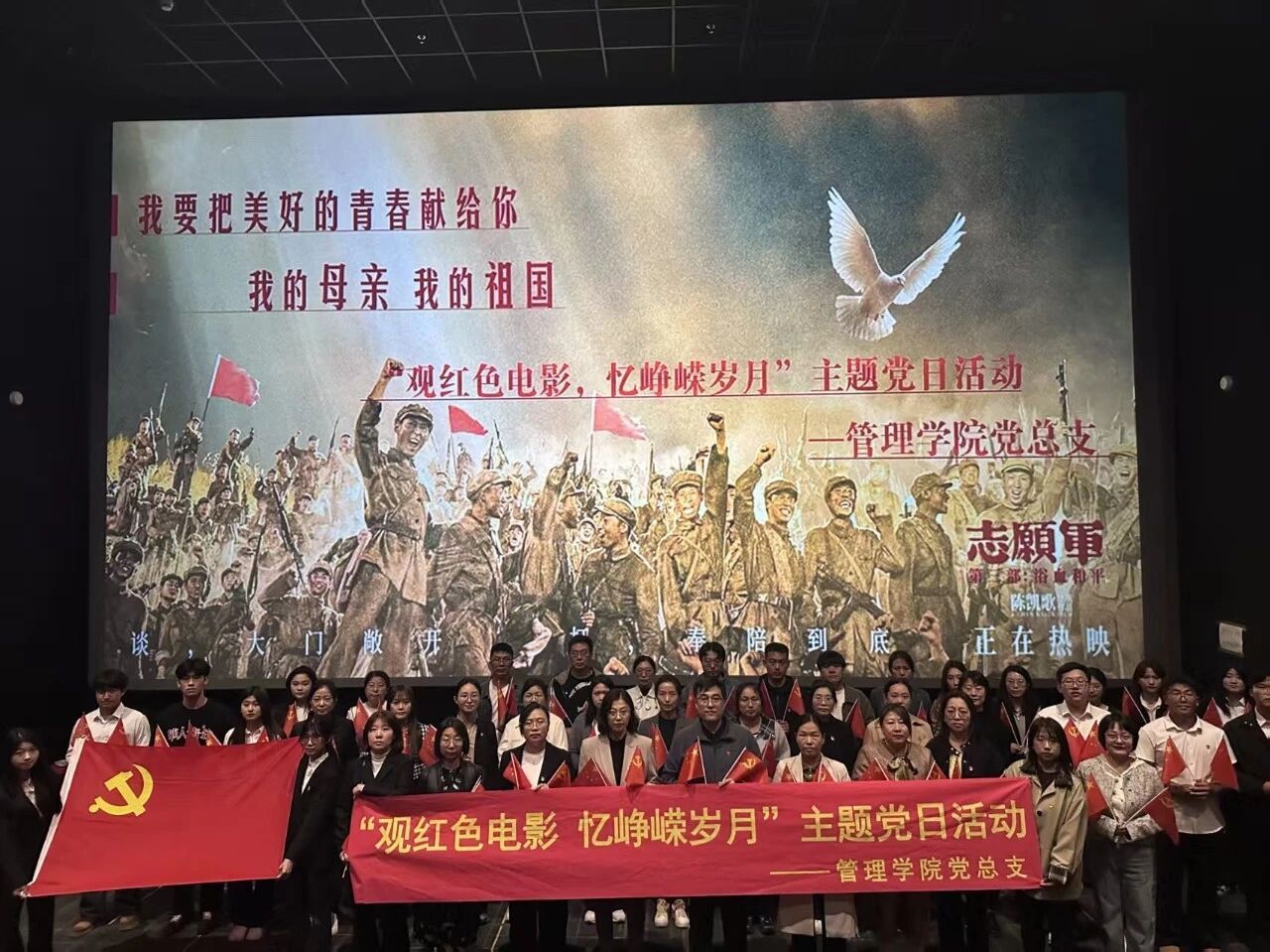 为进一步传承抗美援朝精神,深化党史学习教育,tyc122cc太阳成集团党总支开展“观红色电影 忆峥嵘岁月”主题党日活动,于10月11日组织师生党员集体观看电影《志愿军:浴血和平》,通过沉浸式观影体验,重温革命历史,汲取奋进力量。