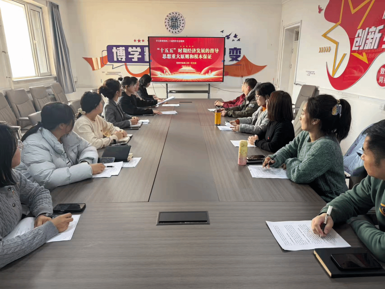 姜文雯首先带领大家集中学习了“‘十五五’时期经济社会发展的指导思想、重大原则和根本保证”和“‘十五五’时期经济社会发展的重大战略任务”。并强调,指导思想是引领发展的总纲领,重大原则是推进工作的基本遵循,根本保证是实现目标的坚强保障,全体党员要深刻领会其核心要义,切实把思想和行动统一到党中央决策部署上来。结合当前经济社会发展形势,详细解读了各项战略任务的内涵与要求,引导党员们认识到重大战略任务是实现高质量发展的关键举措,需要立足本职岗位,主动担当作为,将学习成果转化为推动工作的实际动力。与会全体党员围绕核心学习内容交流发言,结合专业方向与业务实际延展学习内容。