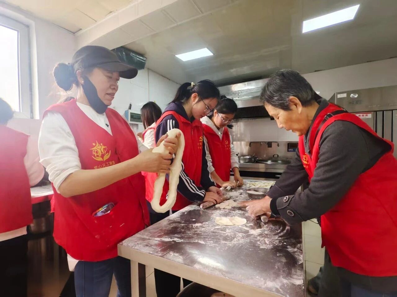 志愿服务中,党员们分工协作、各尽其责。一部分党员化身“暖心保洁员”,细致清洁公共区域门窗、护栏,清除卫生死角,营造整洁舒适的居住环境;一部分党员走进厨房,与工作人员一同帮工包饺子,用烟火气传递温情;还有党员围坐老人身旁唠家常、听故事,耐心倾听老一辈生活点滴,关切询问身体与生活状况,用陪伴温暖老人心灵。