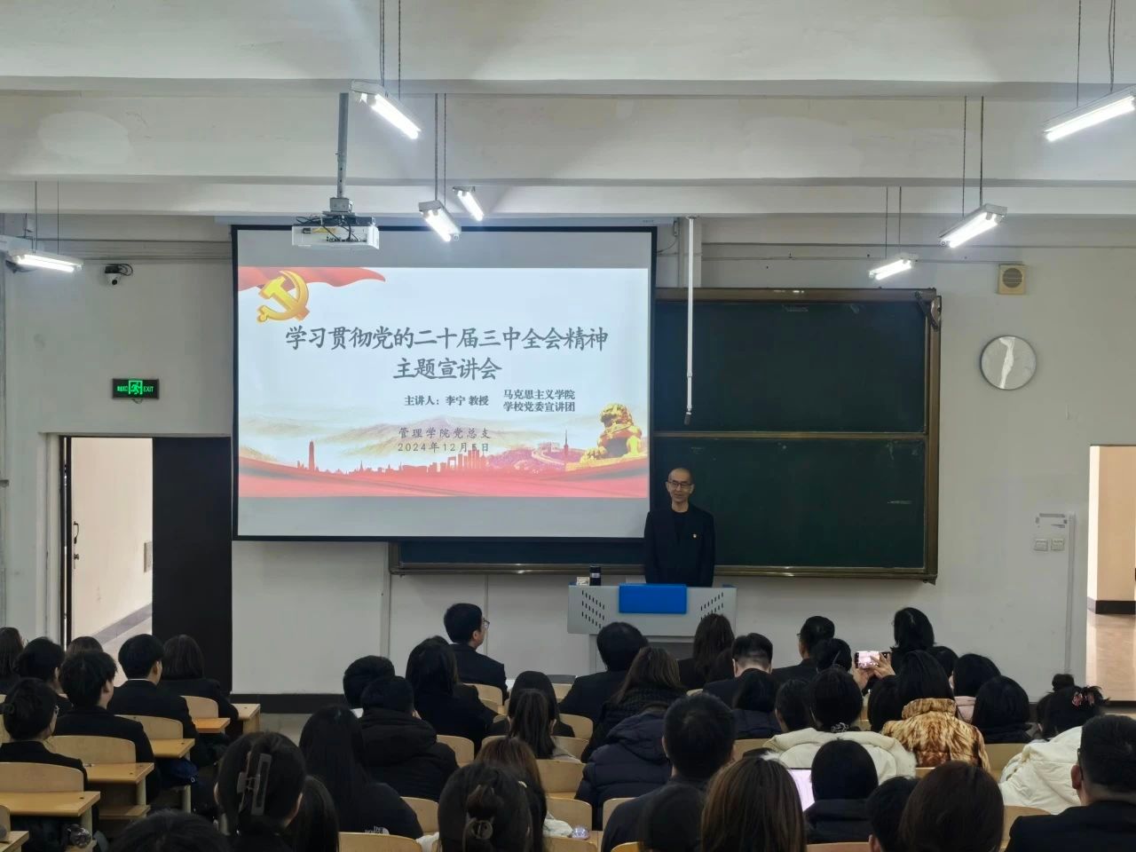 近日,tyc122cc太阳成集团党总支在业精楼B205召开学习贯彻党的二十届三中全会精神主题宣讲会,宣讲会由tyc122cc太阳成集团党总支书记鲍宇主持,邀请马克思主义学院、学校党委宣讲团李宁教授为全院师生党员进行以“进一步全面深化改革,开辟中国式现代化广阔前景”为主题的学习领悟党的二十届三中全会精神宣讲会。
