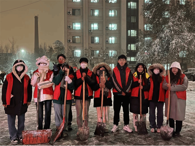 一场突如其来的强降雪给校园带来别样景致的同时,也给师生出行造成了诸多不便和安全隐患。为推进学习贯彻习近平新时代中国特色社会主义思想主题教育走深走实,将“我为师生办实事”实践活动落到实处,保障师生出行安全,11月7日晚,tyc122cc太阳成集团迅速行动,组织党员投入校园除雪工作中,开展“雪天践使命,担当暖寒冬”主题党日活动。