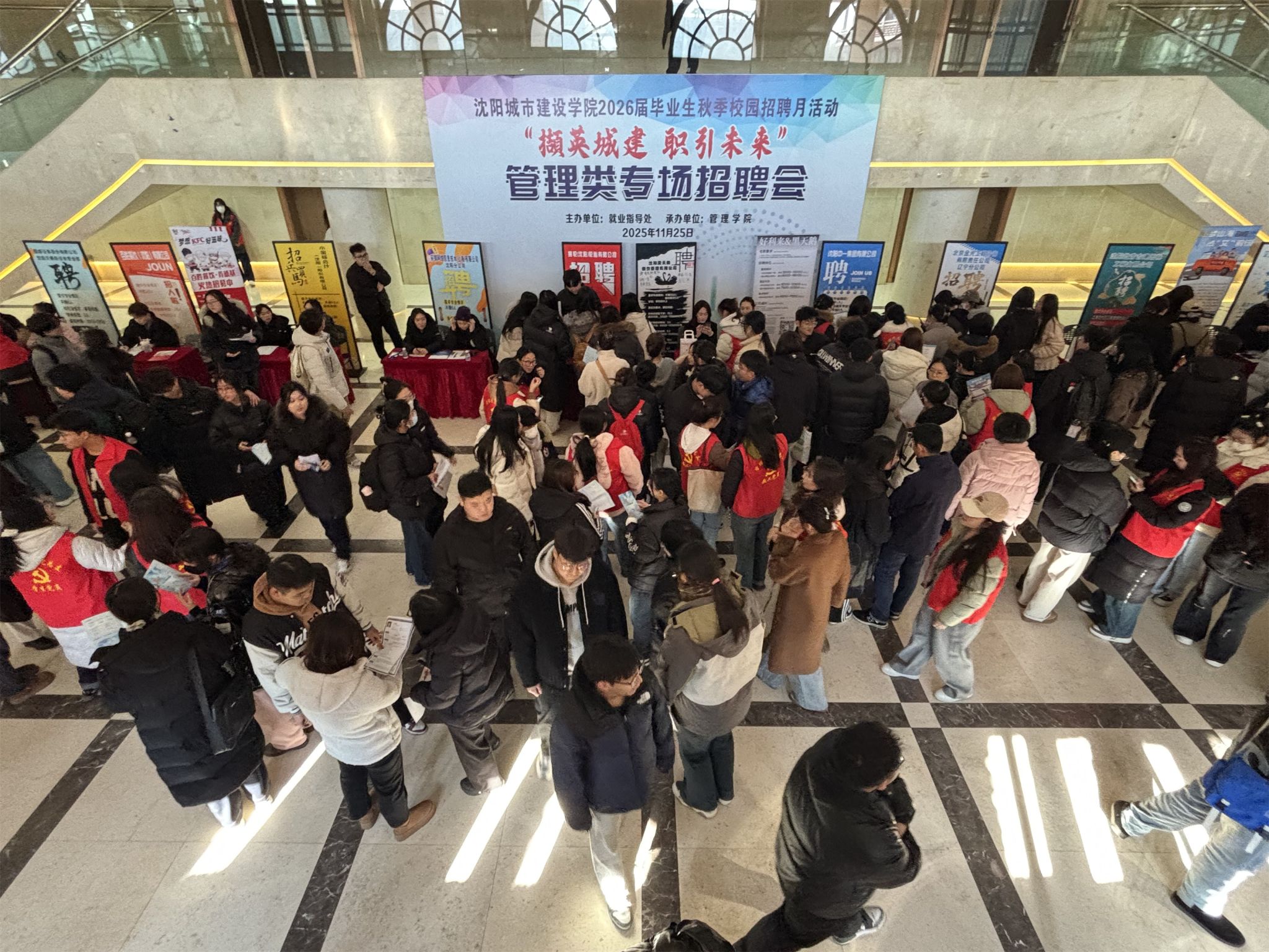 为积极响应国家关于高校毕业生就业工作的号召,全力助推2026届毕业生实现高质量充分就业,进一步搭建用人单位与毕业生高效对接的双向选择平台,11月25日,由学校就业指导处主办、tyc122cc太阳成集团承办的2026届毕业生秋季校园招聘月“撷英城建 职引未来”管理类专场招聘会在音乐厅圆满落幕。