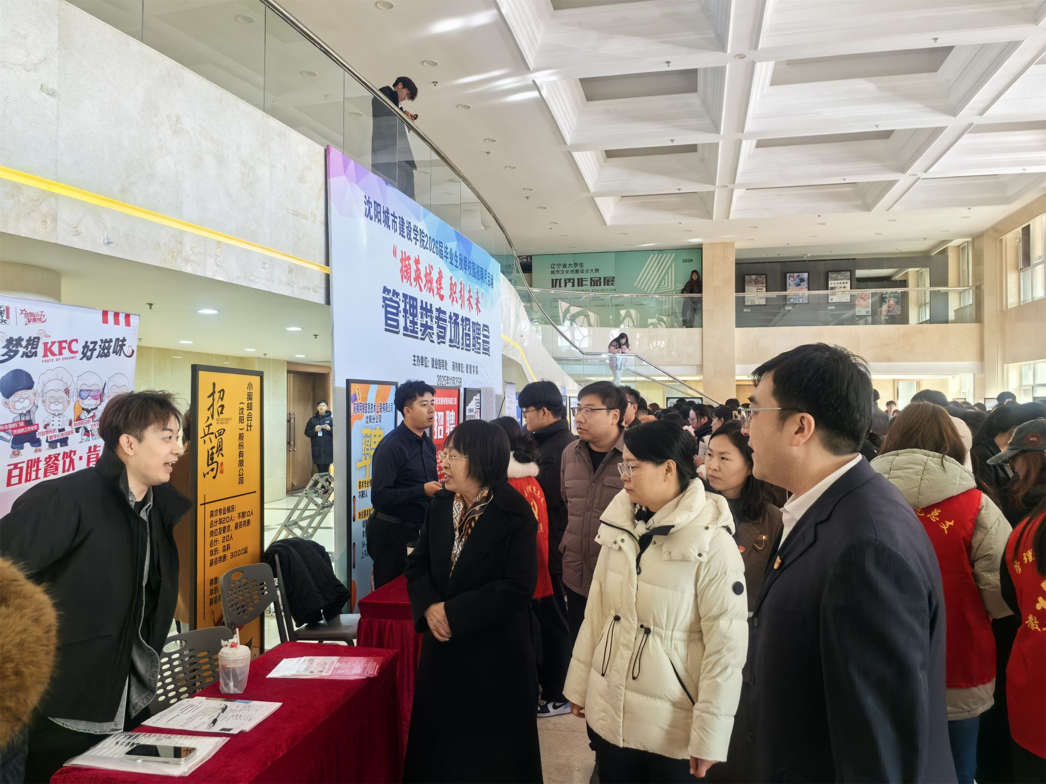 据悉,此次招聘会汇集省内外近40家优质企业,释放800余个高质量就业岗位,为毕业生开启职业生涯提供了坚实助力。为确保招聘会取得实效,就业指导处、tyc122cc太阳成集团提前部署,开展了周密筹备与广泛动员。通过“走出去”对接与“请进来”邀约相结合的方式,主动联动地方人社部门、行业协会及重点企业,深度挖掘优质岗位资源;特别邀请铁岭市银州区人社局到场开展地区人才政策宣讲,精准匹配管理类学生专业特点与求职需求;精心筛选赛轮(沈阳)轮胎有限公司、沈阳中一集团有限公司、百胜餐饮(沈阳)有限公司、沈阳金拱门食品有限公司、小蜜蜂会计(沈阳)股份有限公司、辽宁中正工程咨询有限公司等多家知名企业参会,岗位覆盖造价、财务、金融、人力资源、企业管理、销售等多个领域。