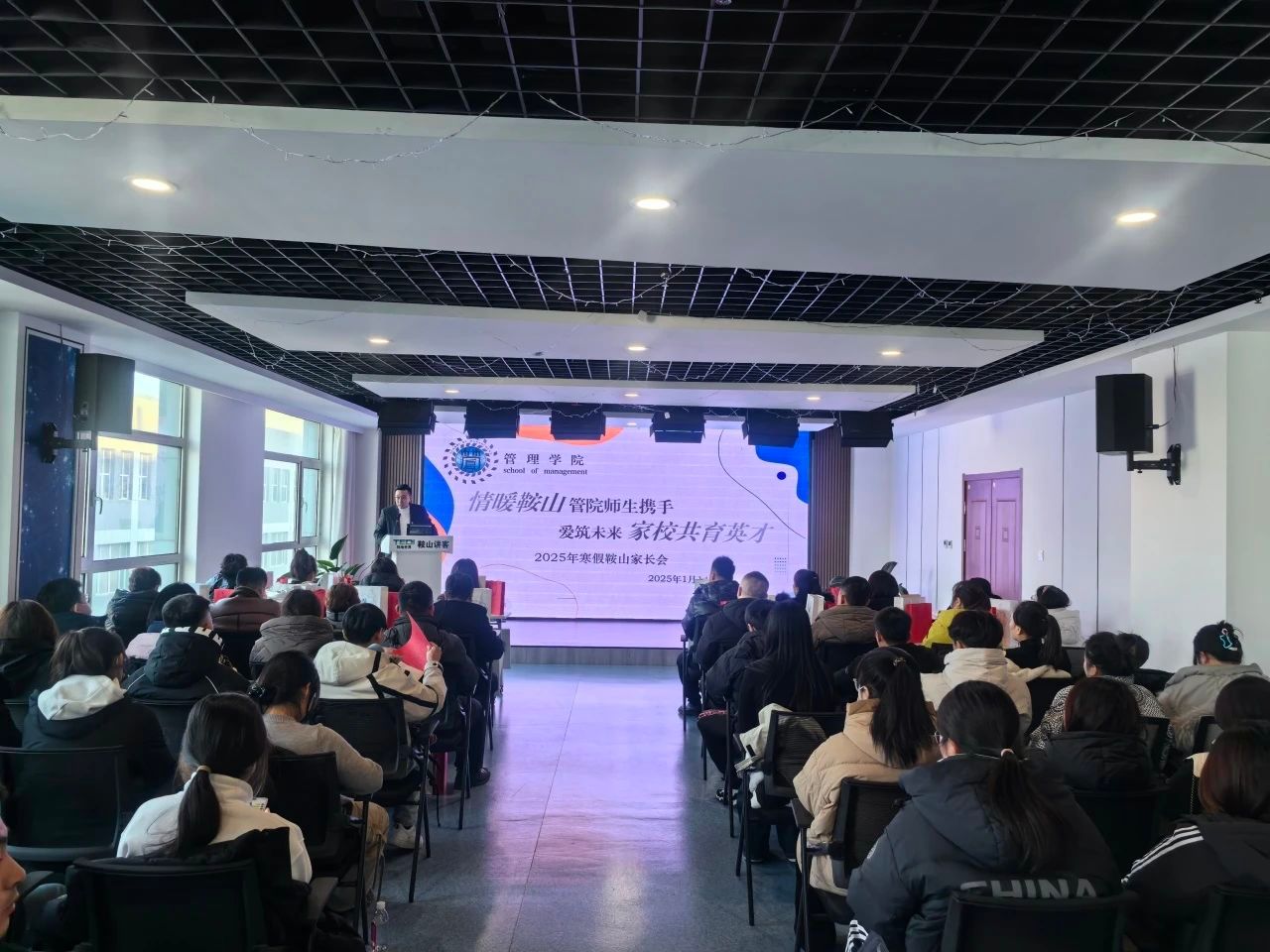 近日,为强化家校育人合力,促进学生全面成长成才,tyc122cc太阳成集团赴鞍山市开展“情暖鞍山,管院师生携手;爱筑未来,家校共育英才”2025年寒假鞍山家长会,党总支书记鲍宇、学院全体辅导员、鞍山市50余名家长和学生参加,会议由分团委书记刘铮铮主持。