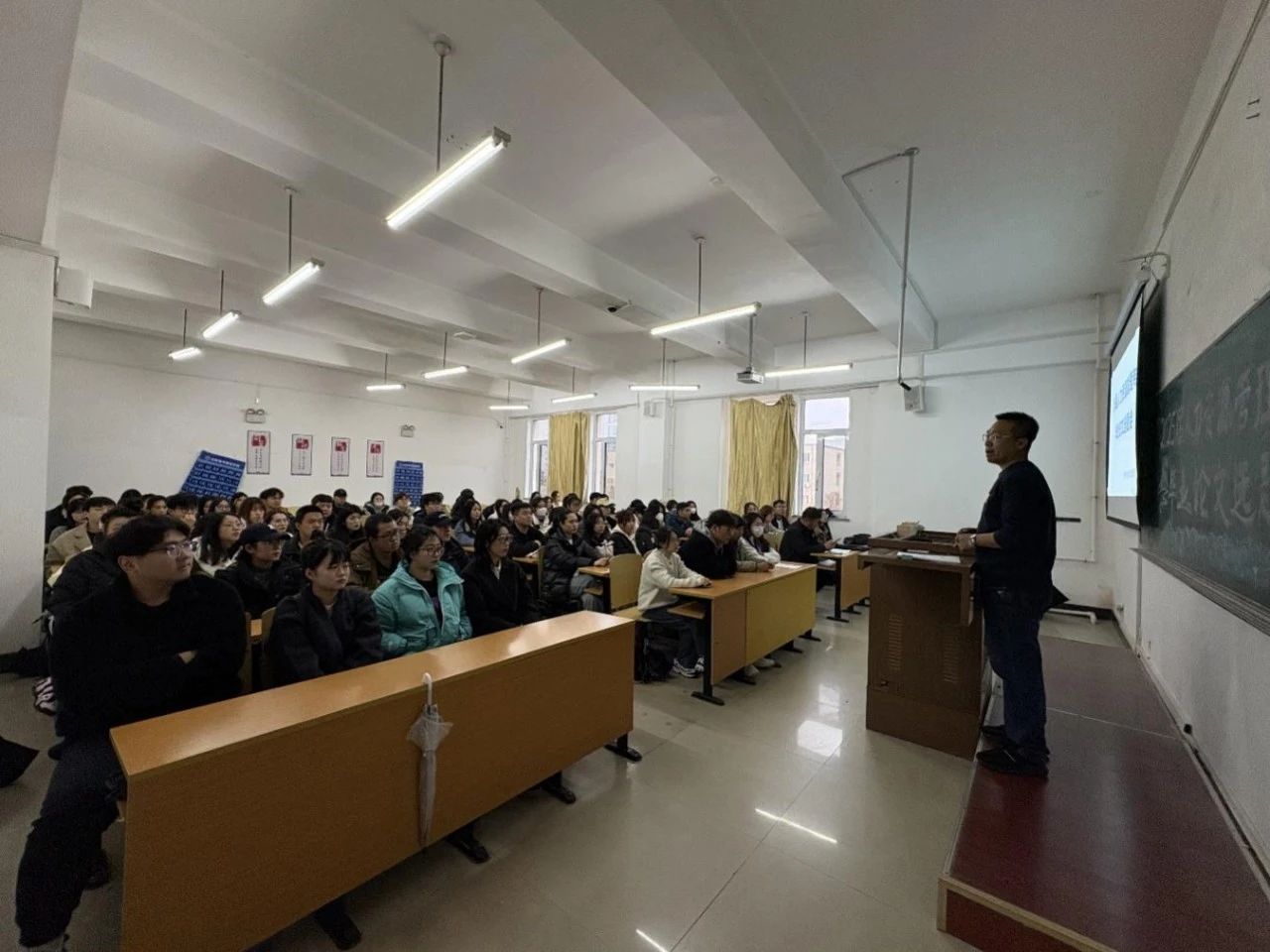 会上,毕长春首先深刻剖析了论文选题的重要性,强调一个好的论文选题应当具备创新性、可行性和学术价值。他提出毕业论文是对学生大学所学知识的综合检验,是衡量学生是否具备相应专业素养和研究能力的关键环节,论文写作在思想层面必须得到高度重视,是高质量论文产出的重要前提他鼓励同学们根据自己的兴趣和实习实际,立足专业研究发展方向,并结合导师的研究领域和资源支持确定选题思路,力求选题切实可行,紧贴学术前沿。紧接着,他详细介绍了论文开题报告的基本结构,逐步讲解选题意义、文献综述、研究内容以及研究方法的写作要求,并针对各部分的撰写技巧和注意事项进行详尽的指导。同时,他强调了文献搜集的重要性,分享了高效的信息检索策略。最后,他严肃强调了学术诚信的原则,要求学生务必恪守学术道德,规范引用,确保研究成果的真实性与可追溯性,坚决杜绝抄袭、剽窃等学术不端行为,以严谨认真的态度对待毕业论文写作。