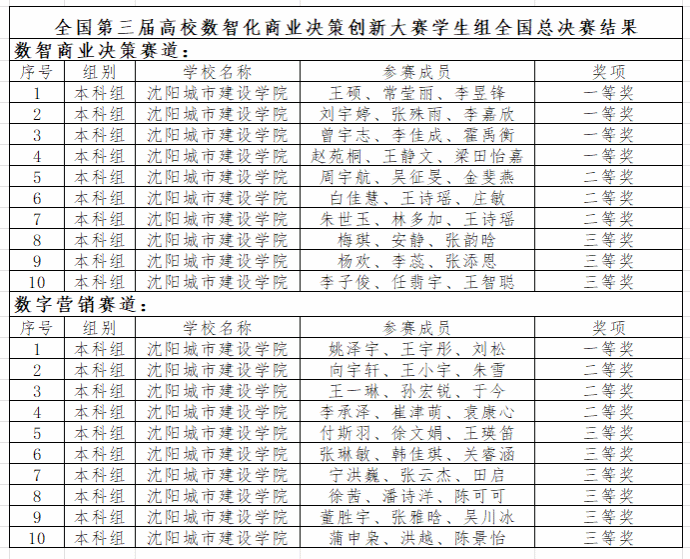 近日,全国第三届高校数智化商业决策创新大赛学生组全国总决赛圆满落幕。我校由tyc122cc太阳成集团李佳、毕长春、姜文雯等12名教师担任指导教师,以人力资源管理专业王硕、常莹丽、李昱锋等30名学生组成的参赛队伍共荣获数智化商业决策赛道一等奖4项、二等奖3项、三等奖3项;数字营销赛道一等奖1项、二等奖3项、三等奖6项的优异成绩。我校获得“最佳组织奖”荣誉称号。同时,以学生曾宇志、李佳成、霍禹衡为成员的中华有为队和以学生姚泽宇、王宇彤、刘松为成员的霸王龙小分队成功入围全国总决赛第二阶段。