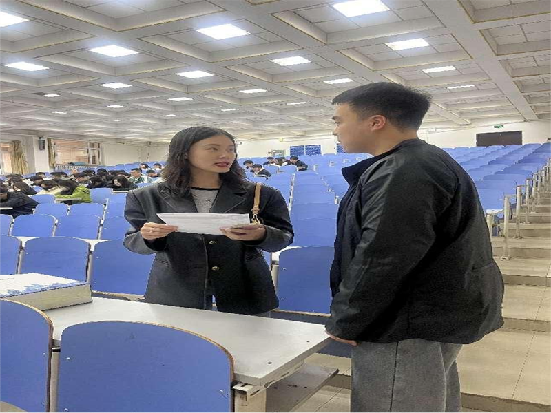 参会毕业生认真倾听企业宣传,对应聘要求、工作环境等提出相关问题,陈迪经理进行了耐心细致的解答,并重点讲解了毕业生所关心的“晋升流程”、“福利待遇”等问题,并提供了企业宣传资料以及校招交流群等联系方式。
