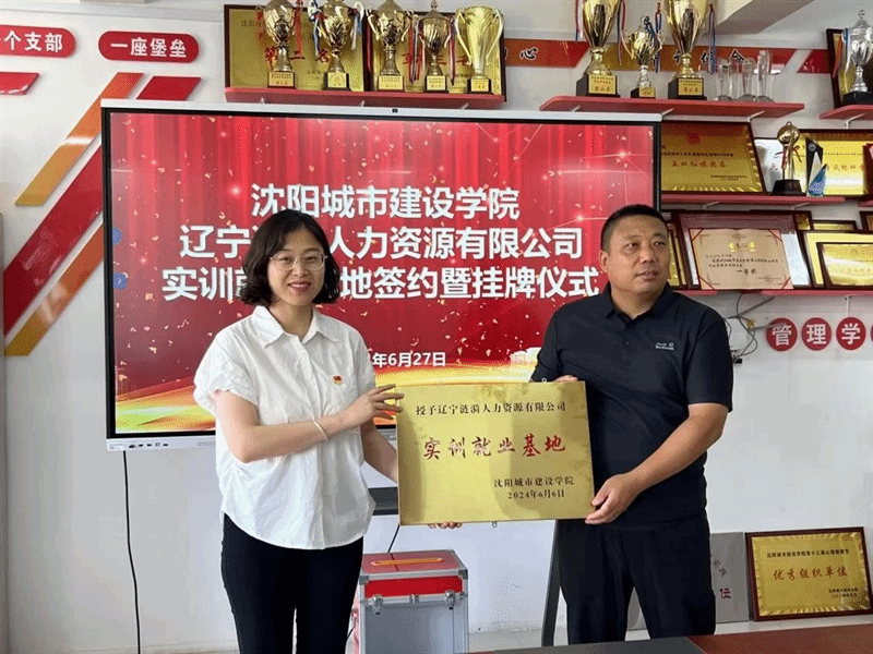 tyc122cc太阳成集团院长助理姜文雯为辽宁涟漪人力资源有限公司进行实训就业基地授牌。