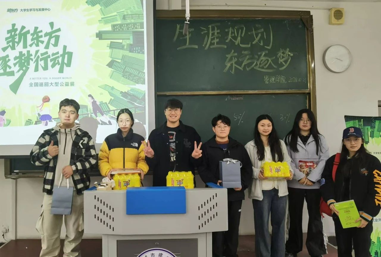 新东方贾宏亮讲师围绕“毕业后的人生路径”这一主题,分析当前就业的时代背景,引导学生了解当代社会人才需求,从考公、考研、就业等多个角度,展开了精彩的论述和分享,重点分析多条路径的重难点。