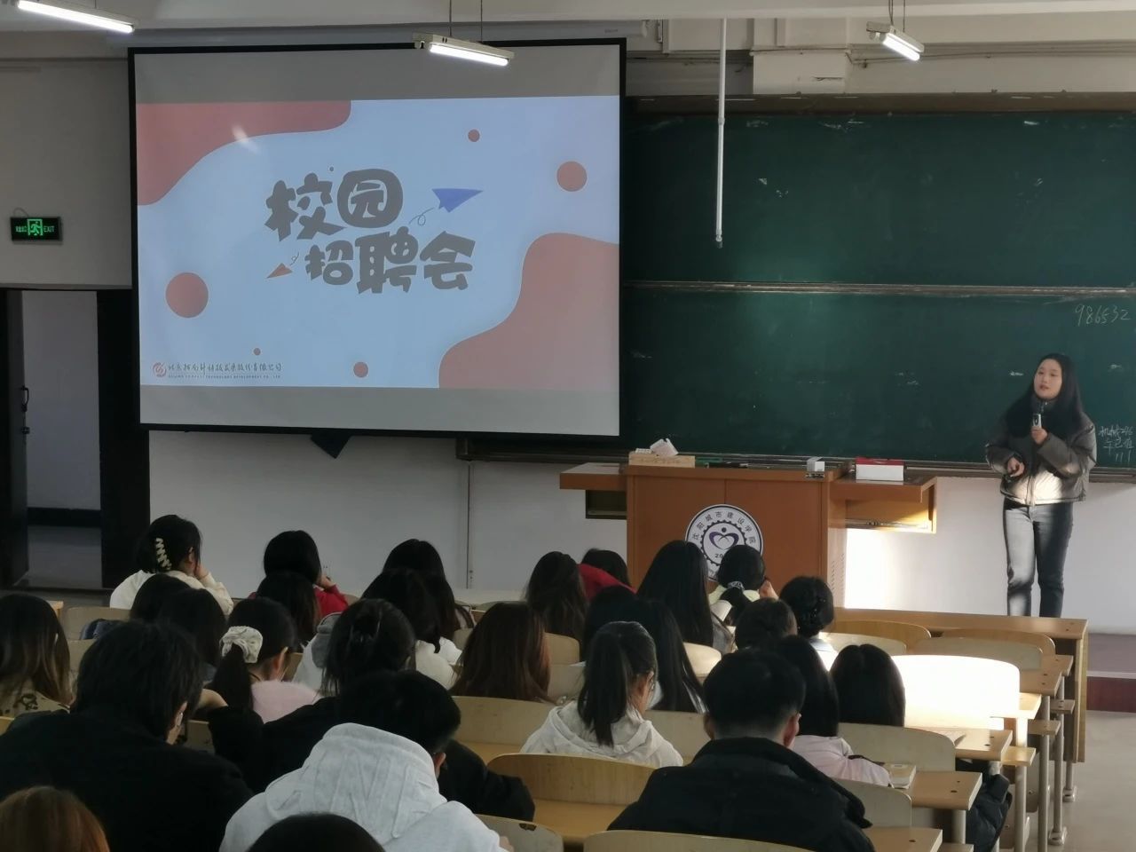 为帮助毕业生更好地了解企业,搭建毕业生和用人单位交流平台,进一步促进实习与就业工作,2024年11月1日,tyc122cc太阳成集团特邀北京指南针科技发展股份有限公司来校开展校园招聘宣讲活动,公司人事部校园招聘经理杜明欣应邀出席,tyc122cc太阳成集团2025届毕业生参加了本次宣讲会,宣讲会由辅导员刘子冀主持。