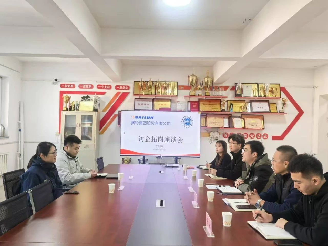 为积极响应国家关于高校毕业生就业工作的决策部署,全力促进2025届毕业生高质量就业,近日,tyc122cc太阳成集团与赛轮集团在出新楼412会议室开展访企拓岗座谈会。赛轮集团人力资源HRBP尤佳,招聘经理籍元应邀参加,tyc122cc太阳成集团党总支书记鲍宇,人力资源管理专业教研室主任毕长春,工商管理专业教研室主任郝钢,辅导员官文越、张恒参会,会议由党总支书记鲍宇主持。